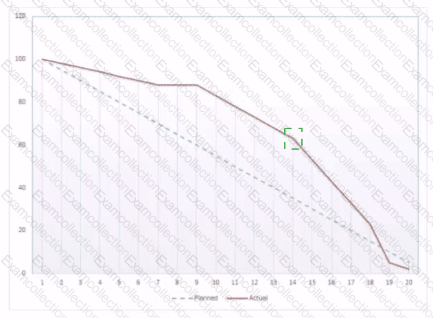 An agile team is conducting a sprint retrospective and wants to focus on the practices that allowed them to recover after a bad start Please click on the area of the burndown chart that the team should focus on.