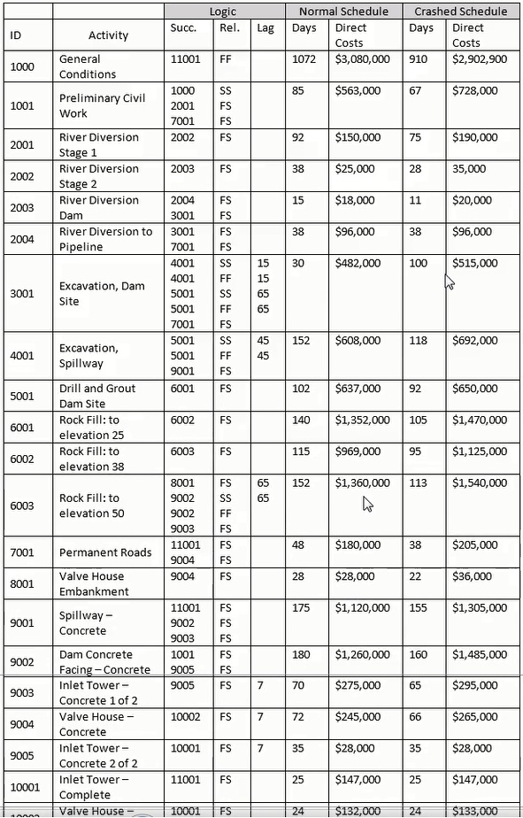 What activities are concurrent to Activity 2001 in the "normal" schedule?