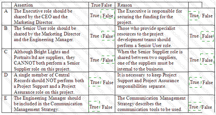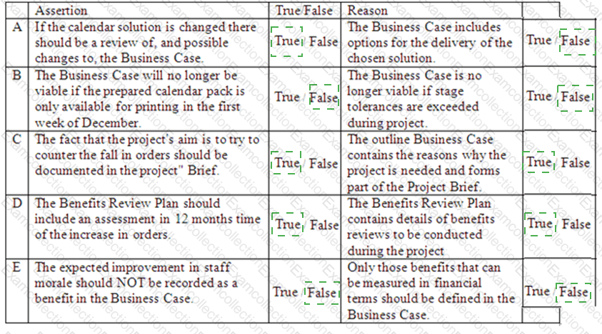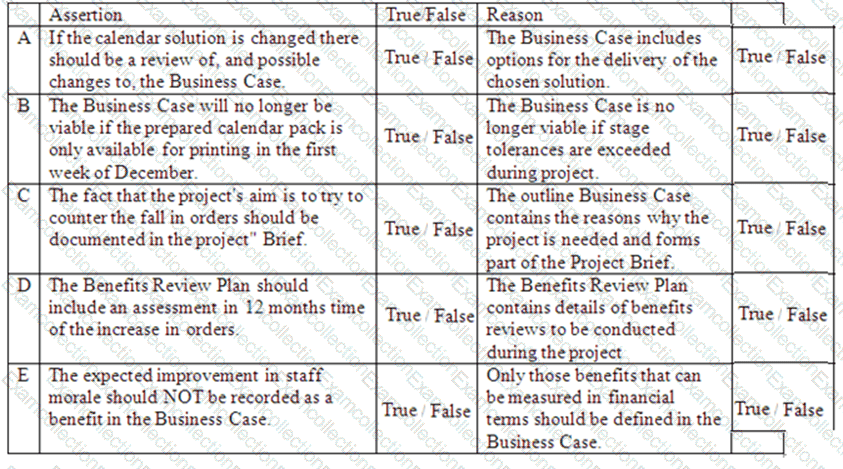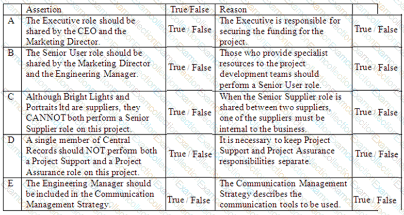 Lines A to E in the table below consist of an assertion statement and a reason statement. For each line identify the appropriate option, from options A to E, that applies. Each option can be used once, more than once or not at all.