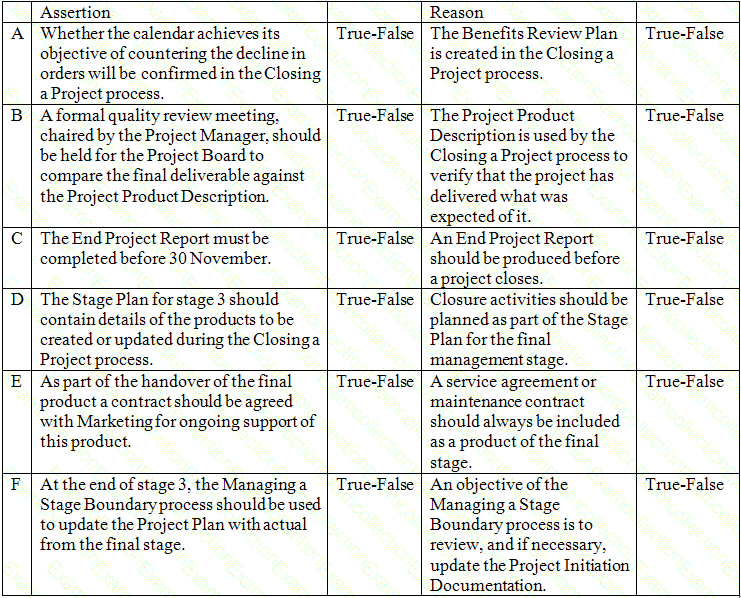 Lines 1 to 6 in the table below consist of an assertion statement and a reason statement. For each line identify the appropriate option, from options A to E, that applies. Each option can be used once, more than once or not at all.