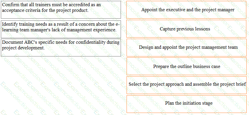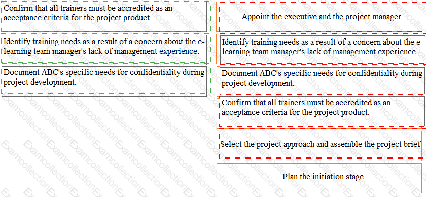The senior user is concerned that the trainers' limited availability could delay their accreditation. This was discussed during the 'starting up a project' process, but during the 'initiating a project' process the project manager notices that it has not been recorded.
