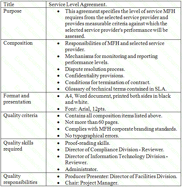 The service level agreement between MFH and the selected service provider will specify the type and quality of service required. The selected service provider must follow the industry standards for providing outsourced services.