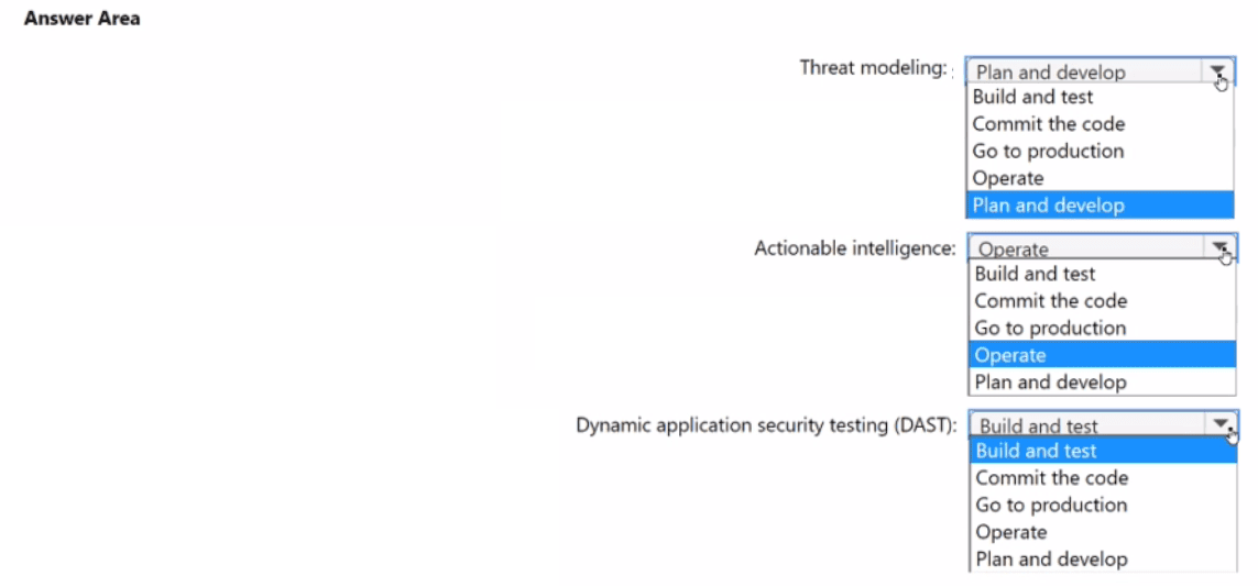 During which stage of a continuous integration and continuous deployment (CI/CD) DevOps process should each security-related task be performed? To answer, select the appropriate options in the answer area.