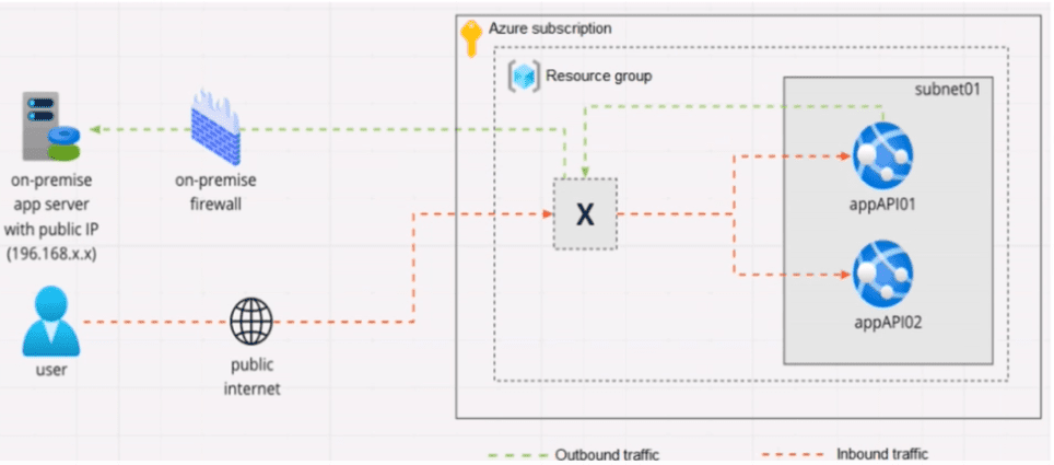 You need to recommend a solution to ensure that the web apps can communicate with the on-premises application server. The solution must minimize the number of public IP addresses that are allowed to access the on-premises network.