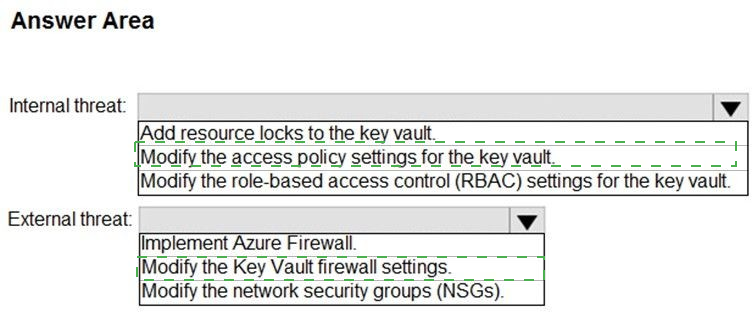 What should you recommend for each threat? To answer, select the appropriate options in the answer area.
