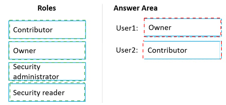 Which role should you assign to each user? To answer, drag the appropriate roles to the correct users. Each role may be used once, more than once, or not at all. You may need to drag the split bar between panes or scroll to view content.