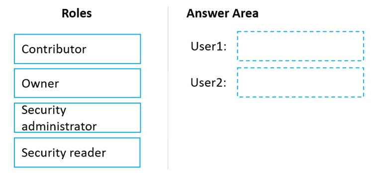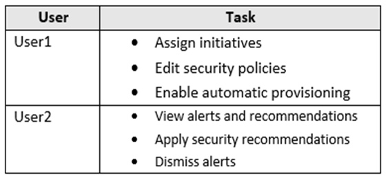 You need to enable User1 and User2 to perform tasks at the subscription level as shown in the following table.