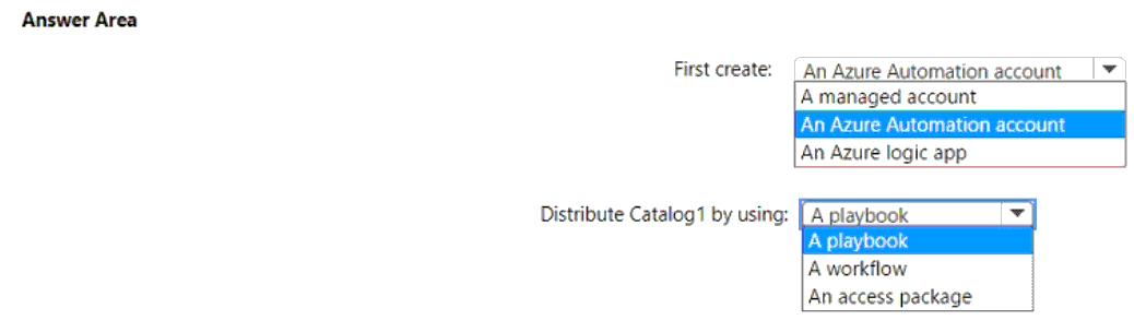 What should you create first and what should you use to distribute Catalog1? To answer, select the appropriate options in the answer area.