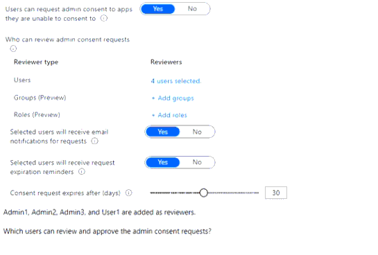 You configure the Admin consent requests strong as shown in the following exhibit.
