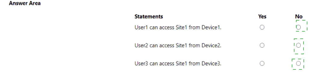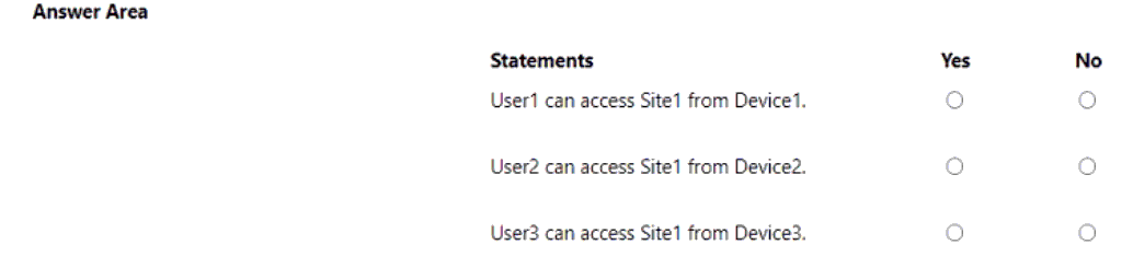 You have a Microsoft 365 E5 subscription that contains a Microsoft SharePoint Online site named Site1 and the users shown in the following table.