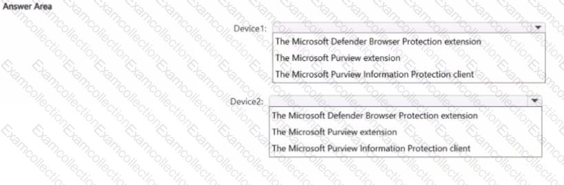 You have a Microsoft 36S ES subscription that contains two Windows devices named Devicel1and Device2 Device1 has the default browser set to Microsoft Edge. Devke2 has the default browser set to Google Chrome.