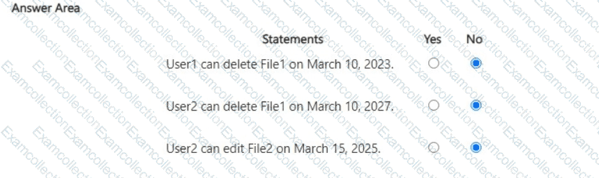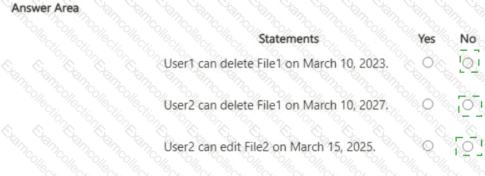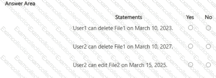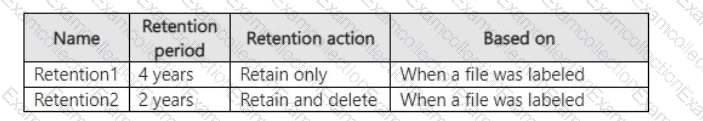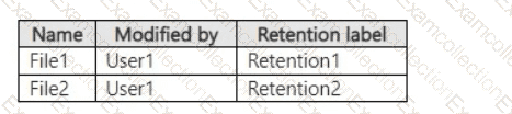 On March 1,2023, you assign the retention labels to the files shown in the following table.