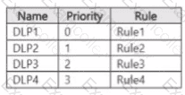You have a Microsoft 365 E5 subscription that contains a Microsoft SharePoint Online site named Site! and the data loss prevention (DLP) policies shown in the following table.