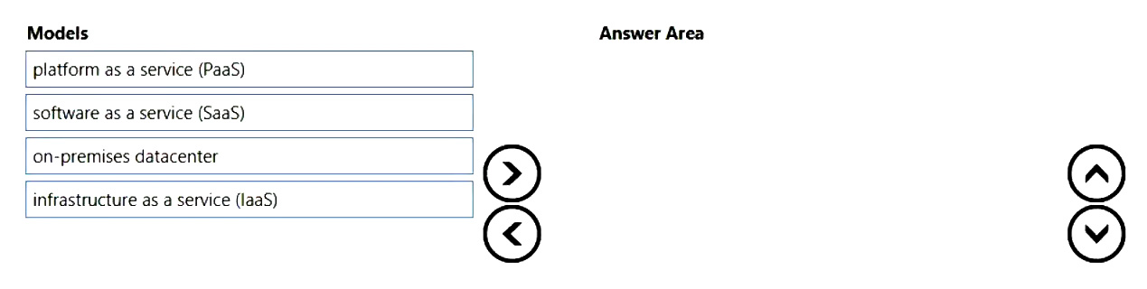 in which order should you list the service models from the most customer responsibility (on the top) to the least customer responsibility (on the bottom)? To answer, move all models from the list of models to the answer area and arrange them in the correct order.