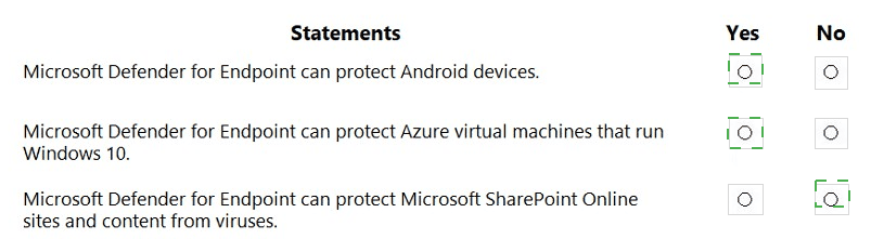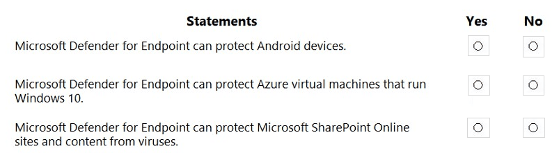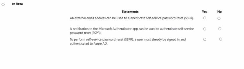 For each of the following statements, select Yes if the statement is true. Otherwise, select No.
