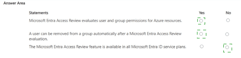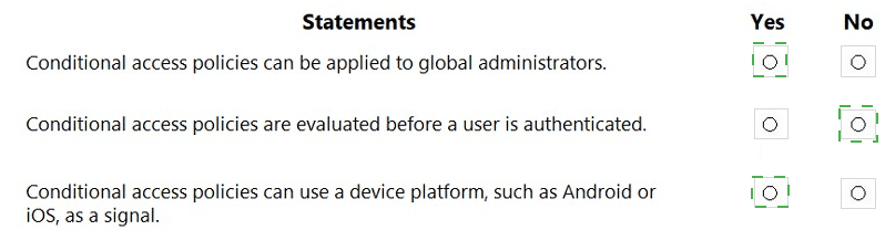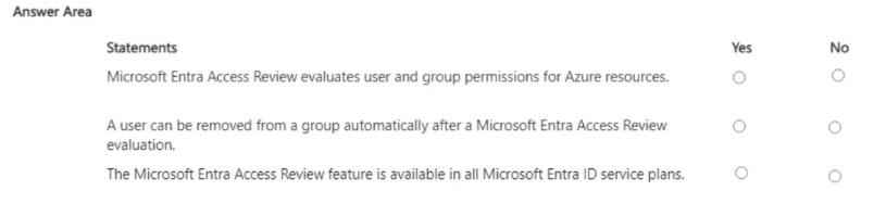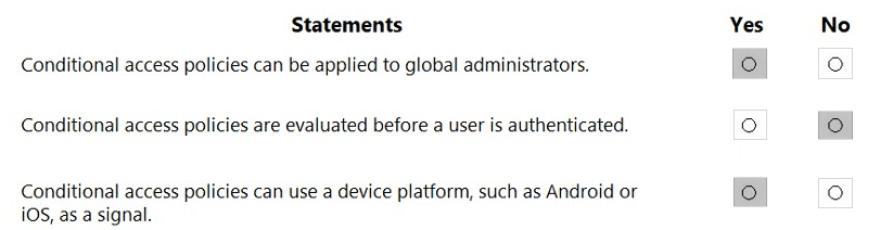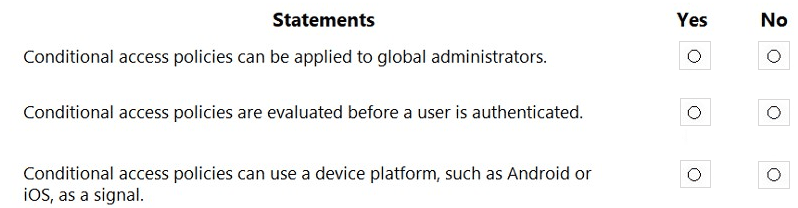 For each of the following statements, select Yes if the statement is true. Otherwise, select No.