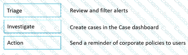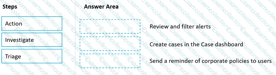 Match the Microsoft 365 insider risk management workflow step to the appropriate task.