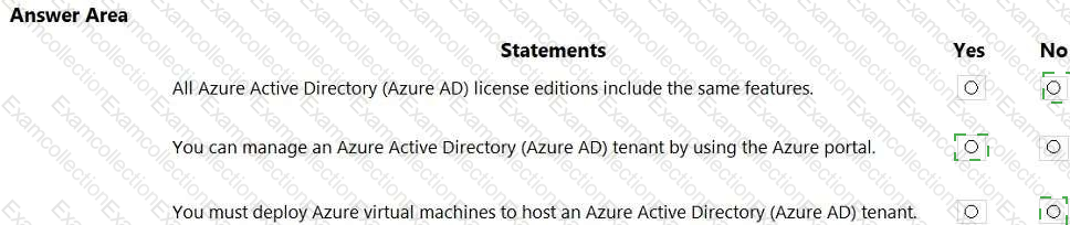 For each of the following statement, select Yes if the statement is true Otherwise, select No.