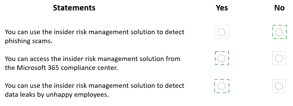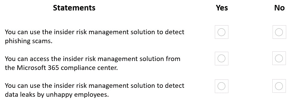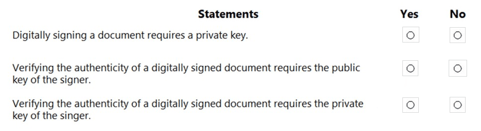 For each of the following statements, select Yes if the statement is true. Otherwise, select No.