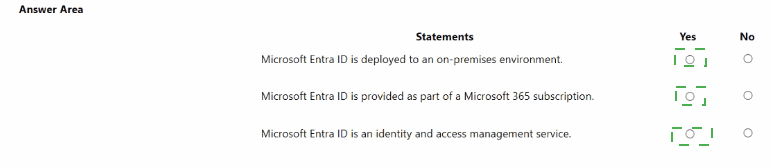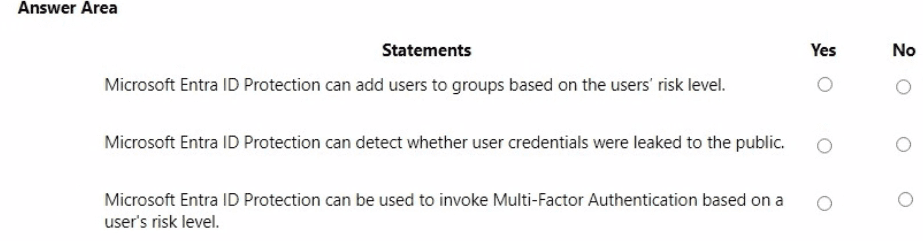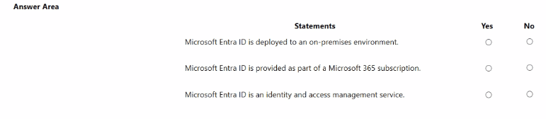For each of the following statements, select Yes if the statement is true. Otherwise, select No.