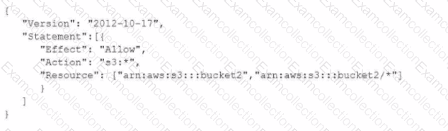 An AWS account includes two S3 buckets: bucketl and bucket2. The bucket2 does not have a policy defined, but bucketl has the following bucket policy: