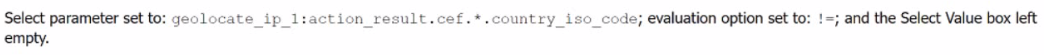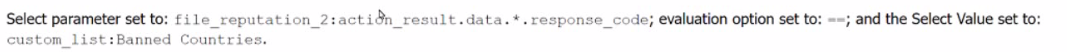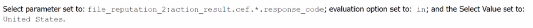 Two action blocks, geolocate_ip 1 and file_reputation_2, are connected to a decision block. Which of the following is a correct configuration for making a decision on the action results from one of the given blocks?