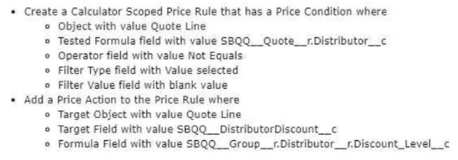 Universal Containers has set up an Account lookup field, Distributor__c, on the Quote to identify different distributors per group. Distributor accounts have a Discount_Level__c field populated with the base discount percentage that products provided by that distributor will receive.