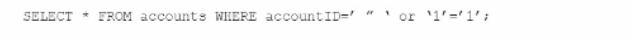 An individual is developing a software application that has a back-end database and is concerned that a malicious user may run the following SOL query to pull information about all accounts from the database: