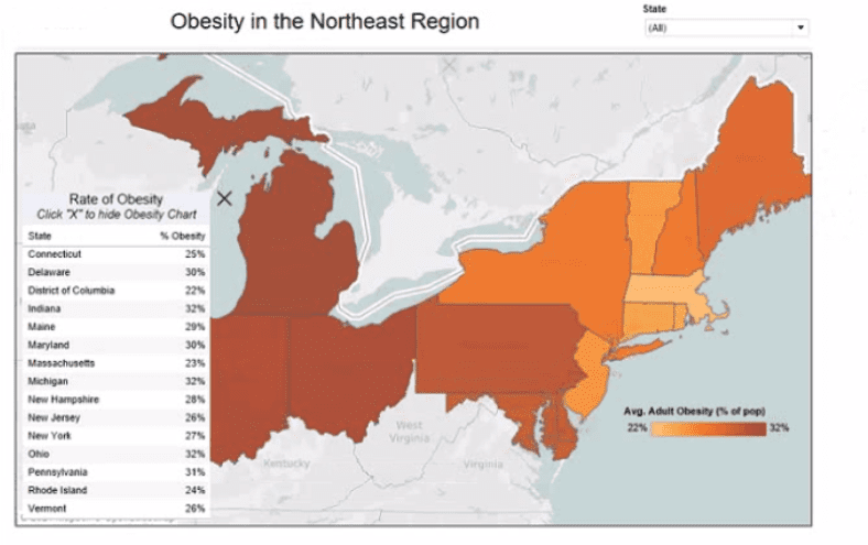 The analyst has a view that has a dimension filter on the State column to exclude five states.