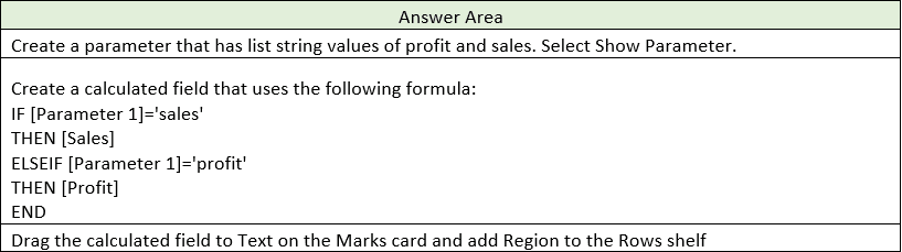 The table must show either profit or sales based on the selection from the Parameter 1 menu.