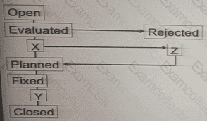 The diagram below shows an incomplete defect management process, where three states (states X, Y and Z) have yet to be named appropriately.