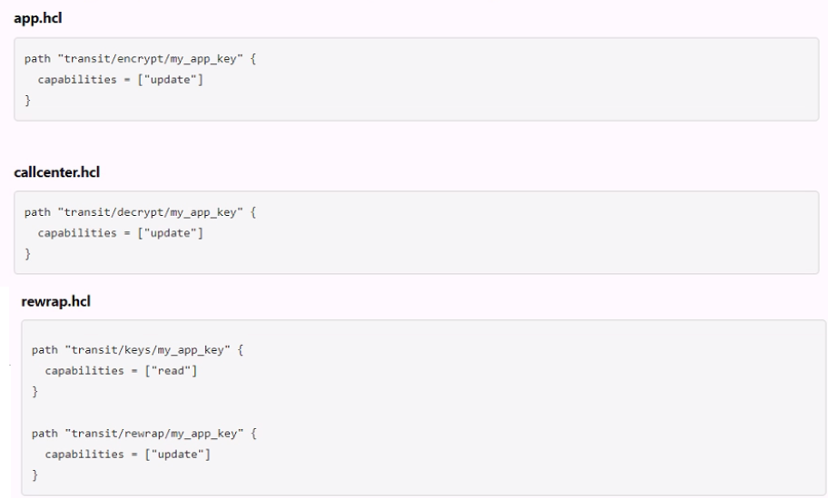 The following three policies exist in Vault. What do these policies allow an organization to do?