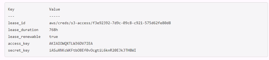 A developer mistakenly committed code that contained AWS S3 credentials into a public repository. You have been tasked with revoking the AWS S3 credential that was in the code. This credential was created using Vault's AWS secrets engine and the developer received the following output when requesting a credential from Vault.